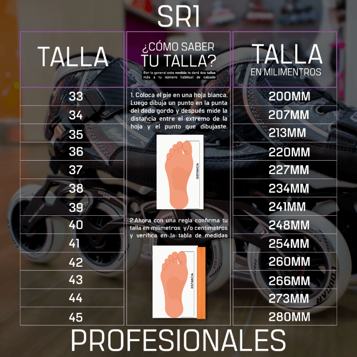 Sin embargo te dejamos un cuadro donde puedes comprobar la talla cuidadosamente, es muy sencillo solo tienes que medirte el pie del talón al dedo pulgar y ubicar tu medida en la tabla de tallas.